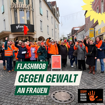 Wir waren am 1. Dezember beim Flashmob gegen Gewalt an Frauen und Mädchen in Ibbenbüren dabei. Es war beeindruckend wie viele Menschen in Orange gekommen sind, um ein Zeichen zu setzen.