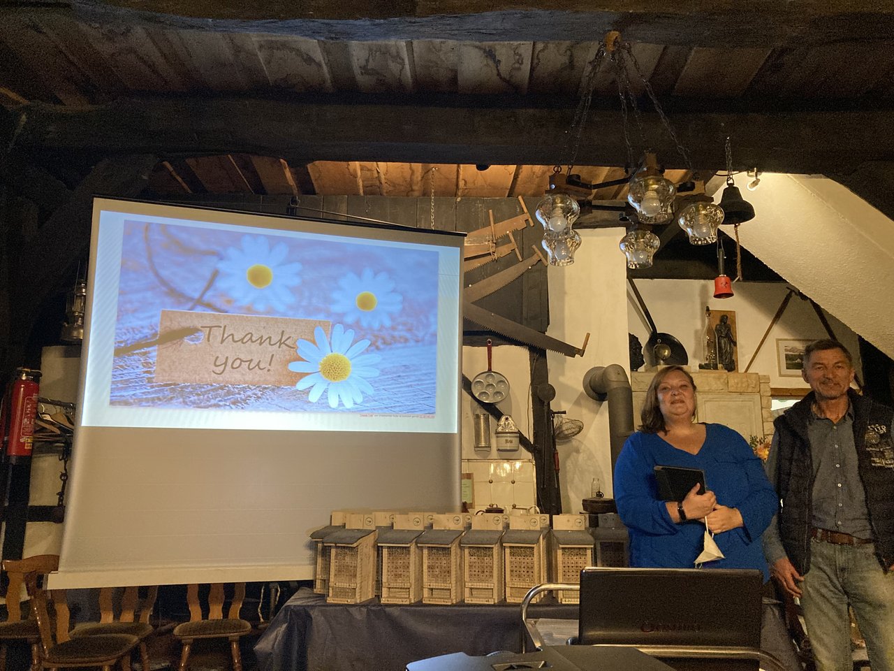 Natürlich war das Fichtensterben DAS große Thema. Herr Berkemeier referierte, warum Fichten früher in Monokultur angebaut wurden und über die Schwierigkeiten und Möglichkeiten der Wiederaufforstung. Es wurden verschiedene Baumarten erläutert wie Eichen, Buchen, Esskastanien und Douglasien. Die Kiefer scheint der Nadelbaum der Zukunft in unserer Gegend zu sein, da sie der Trockenheit besser trotzt als die Fichte.