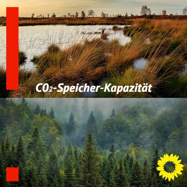 Moore sind extrem wertvolle Lebensräume für seltene Tiere und Pflanzen wie beispielsweise den Moorfrosch oder den Sonnentau. Ebenso sind sie auch unglaubliche C02-Speicher: Moore können pro Hektar bis zu ca. 700t C02 binden, sechsmal so viel wie Waldflächen. (s. Bilder)